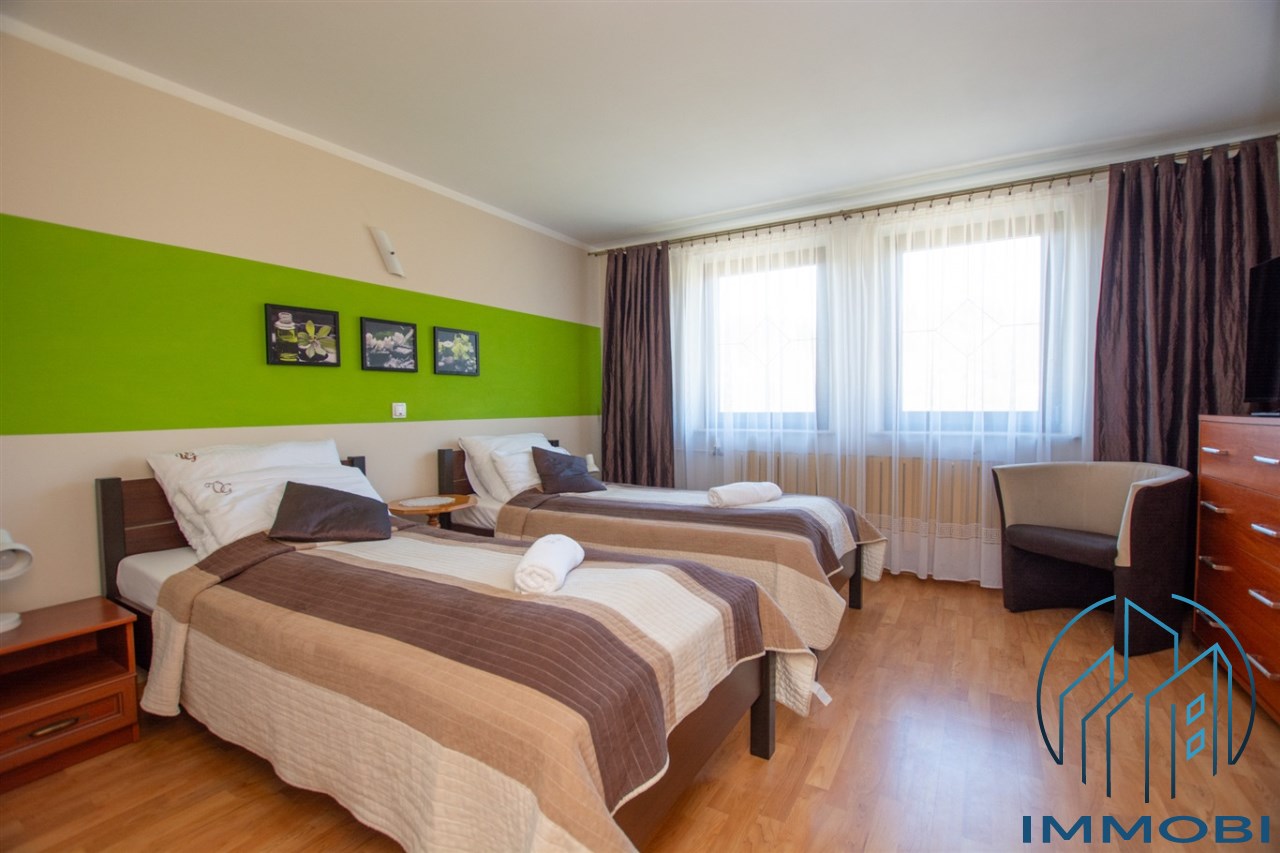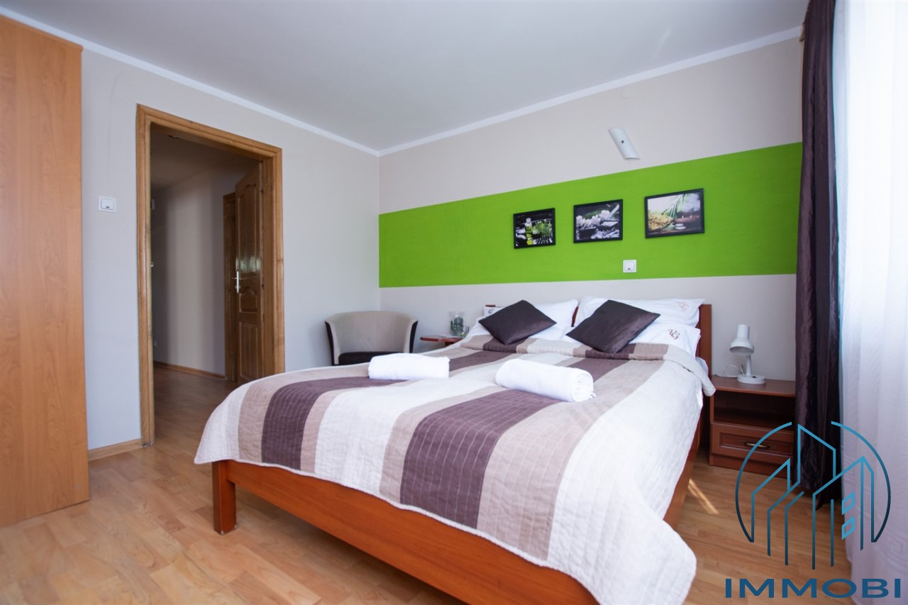 Budynek o powierzchni ok. 450 m² usytuowany jest na działce o powierzchni 1225 m². Dzięki funkcjonalnemu układowi pomieszczeń nieruchomość doskonale sprawdzi się zarówno jako komfortowy dom rodzinny, jak i obiekt pod działalność turystyczną – pensjonat lub wynajem krótkoterminowy.
