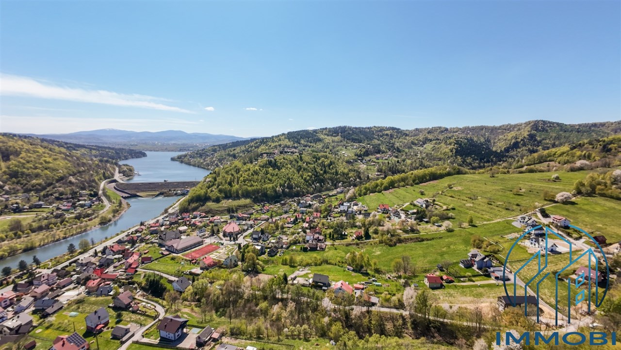Działka położona jest w cichej, górskiej okolicy, gdzie codziennością są piękne widoki, świeże powietrze i spokój. Jednocześnie w niedalekiej odległości znajdują się sklepy, punkty usługowe oraz liczne atrakcje turystyczne regionu – w tym kolej linowo-terenowa i zbiornik wodny przy Góra Żar.